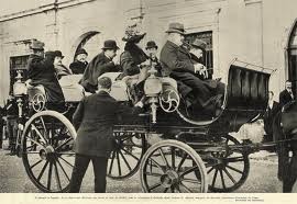 Dom Carlos e Dona Amélia a caminho da Sé do Funchal para o solene Te-Deum de boas-vindas, num típico carro de bois madeirense.
