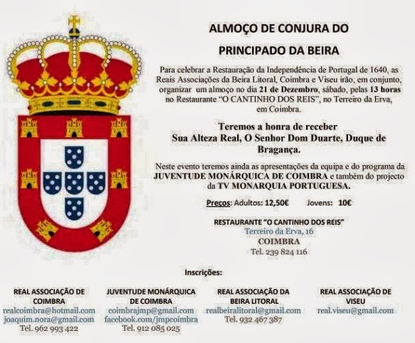 No próximo dia 21 de Dezembro (Sábado) as Reais Associações do centro do País - Beira Litoral (Aveiro), Coimbra e Viseu (as Reais Associações do Principado da Beira) - reúnem-se em Coimbra com o Senhor Dom Duarte.