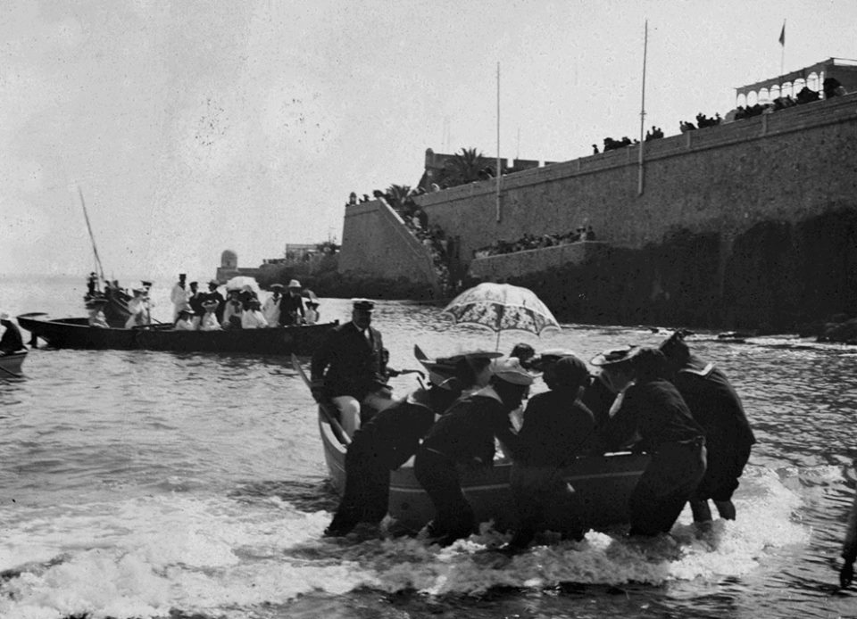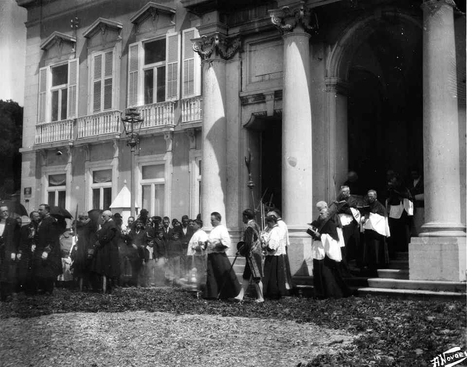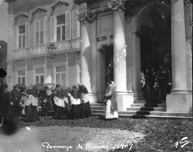 O segundo à esquerda é o futuro Conde de Paris, Henri d'Orleans e, sentada está sua mulher a Princesa Dona Isabel de Orleans e Bragança, que tem nos braços a princesa Isabelle d'Orleans, mais tarde Condessa de Schönborn-Buchheim.