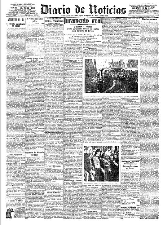 O DN de 19 de março de 1910 noticiou a cerimónia de juramento de D. Afonso como herdeiro do trono português.
