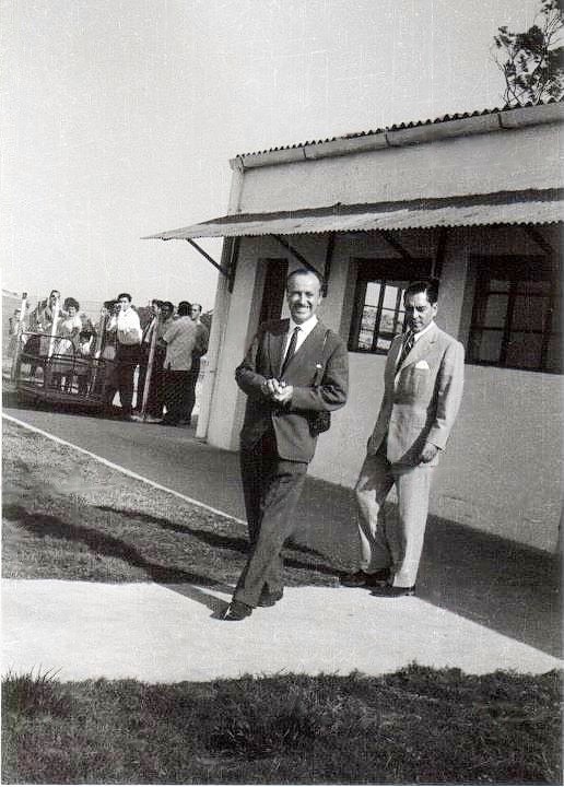 S.A.R., Dom Duarte Nuno à chegada à Beira. É o do meio. Segundo relata o José Crespo de Carvalho, "quem os esperava: as forças vivas da terra, o Senhor Bispo D. Sebastião Soares de Resende, o Governador do Distrito de Manica e Sofala, o Capitão do Porto da Beira, o Comandante das Forças Armadas da Região Centro, directores de serviços , Obras Públicas (Engº Serpa Pinto), o Director de Agricultura e Florestas, Engº Manuel Crespo de Carvalho (representante da Causa Monárquica e quem acompanhou na visita a Família Real), a minha Mãe que era directora e inspectora do exercicio Farmacêutico , Maria Luisa Crespo de Carvalho. Havia muita gente à espera vê-se atrás de uma cerca de onde vem S.A.R., Dom Duarte depois de os ter ido cumprimentar."