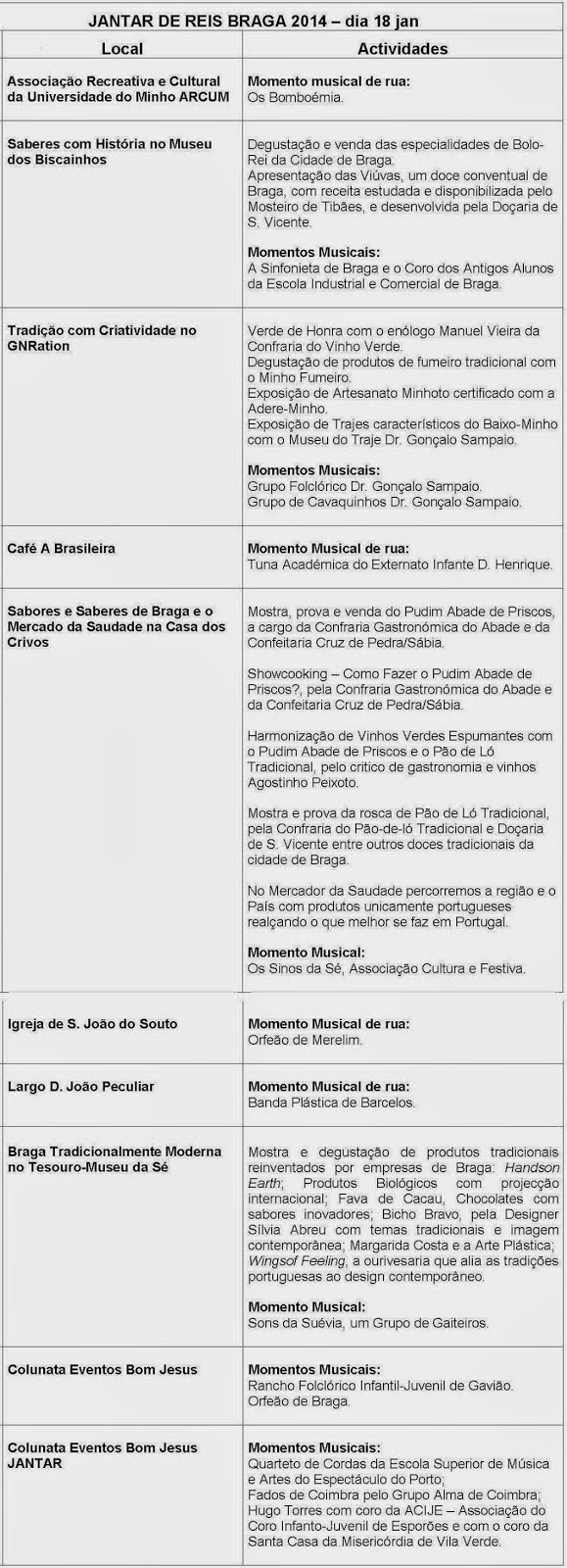 JANTAR DE REIS BRAGA 2014: PROGRAMA COMPLETO