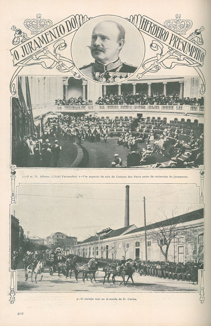 Na cerimónia nas cortes serviram de moços fidalgos, com os seus trajes de gala, seis crianças filhos dos Condes das Galveias, Tarouca e Ribeira, Marquês de Castelo Melhor e D.Vasco da Câmara (Belmonte). O comandante da guarda real dos archeiros, o Marquês do Faial. O ministério e o presidente da Câmara dos Deputados, o Conde de Penha Garcia. Os alunos da Escola do Exército no cortejo.
